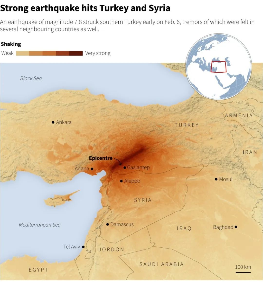 [1] 土耳其和叙利亚强震已致约3,800人丧生. WSJ. 2023-02-07. https://cn.wsj.com/articles/土耳其和叙利亚强烈地震导致3-000多人丧生-11675725308