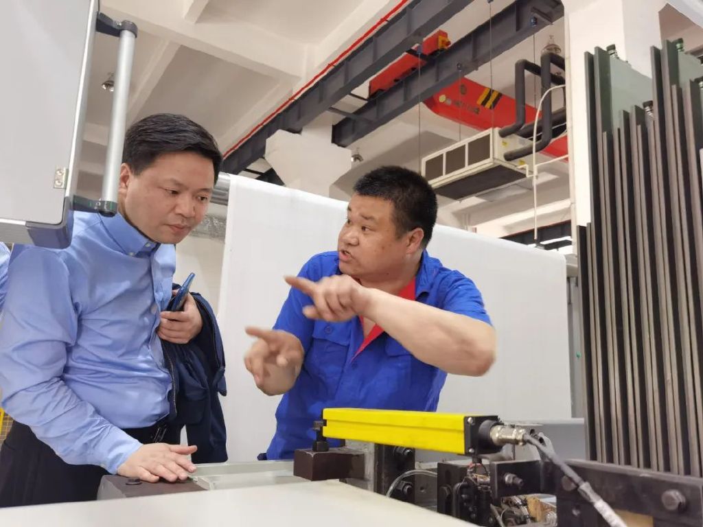 随后,一行人在五洋纺机副总经理王水、王菡珠的陪同下参观了企业。