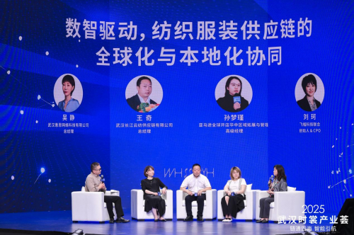 纺织服装产业如何进行数字化融合?未来将有怎样的发展趋势?AI技术如何赋能产业全链条?一场聚焦“数智驱动,纺织服装供应链的全球化与本地化协同”主题的圆桌对话将活动推向高潮。吴静、王奇、孙梦瑾,以及飞榴科技联合创始人、CPO刘珂等行业大咖,围绕纺织服装产业数字化转型等相关话题进行交流。