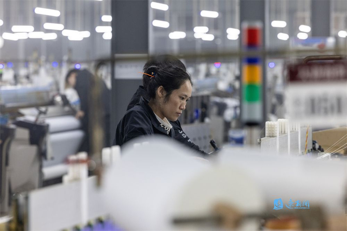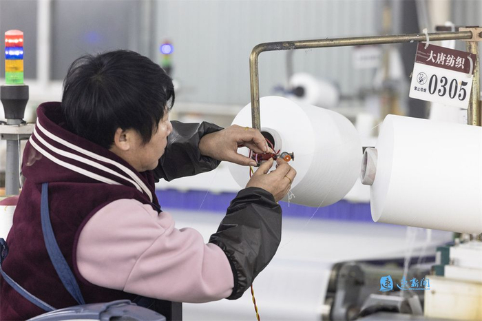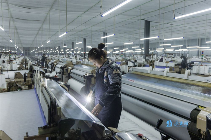 据了解,该企业可年产化纤布3000万米,年产值超亿元,带动当地众多农民就业。(蔡倩蕊 李佳 摄)