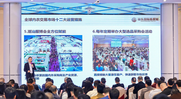 2月12日,汕头国际纺织城全球内衣交易市场项目说明会在汕头潮阳区举办,吸引300余家品牌企业及供应链代表到场参加。